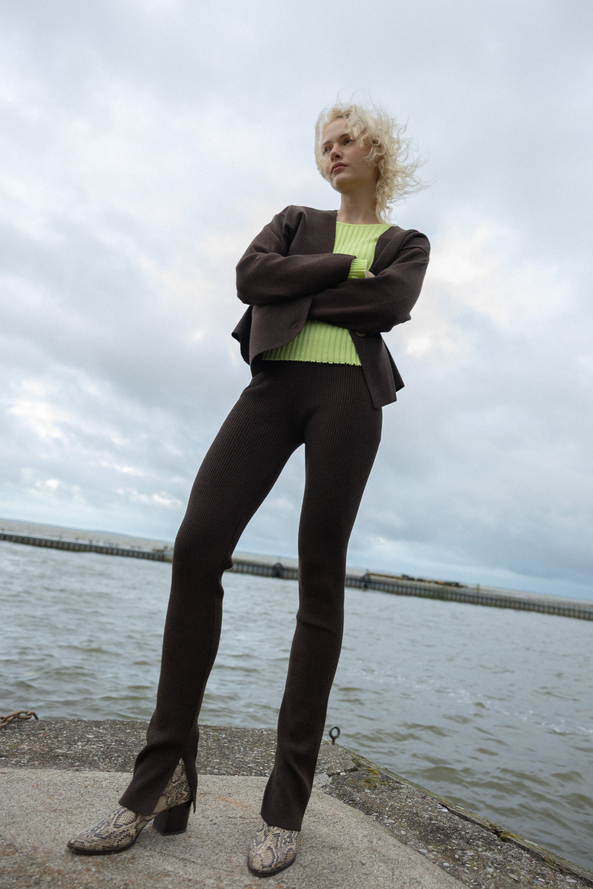 Galante švarkas - tai modernus žvilgsnis į amžiną klasiką. Šio švarko struktūriškas dizainas su dvieiliu susegimu dailiai pabrėžia liemenį. Paslėpti užtrauktukai rankovėse - žaismingas dizaino sprendimas siekiant stiliaus ir funkcionalumo.