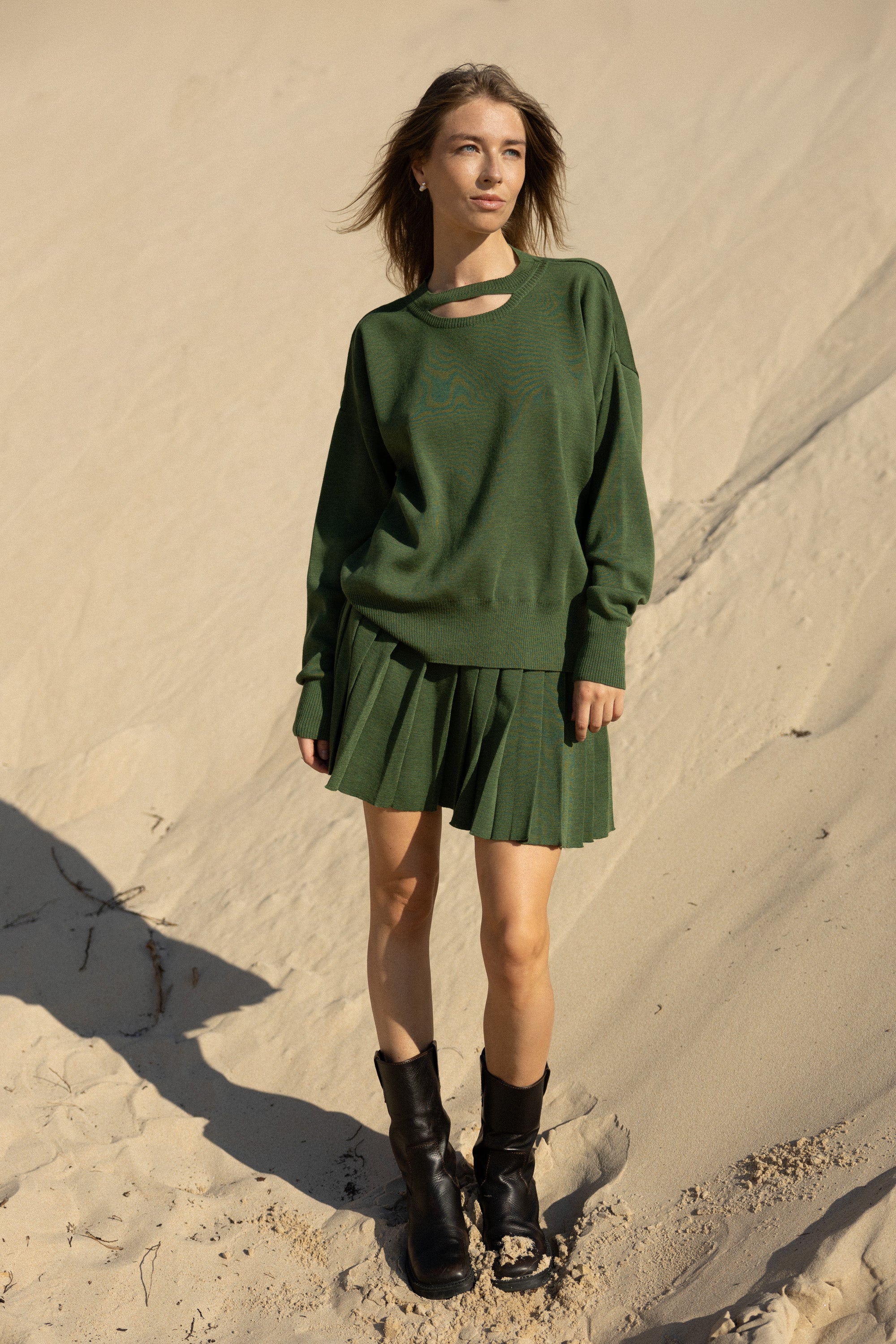 Piccolo sijonas ir Rotondo megztinis - tai stilinga mokyklinės uniformos interpretacija. Jie megzti iš 100% natūralios extra fine merino vilnos, kuri suteiks šilumos ir jaukumo.