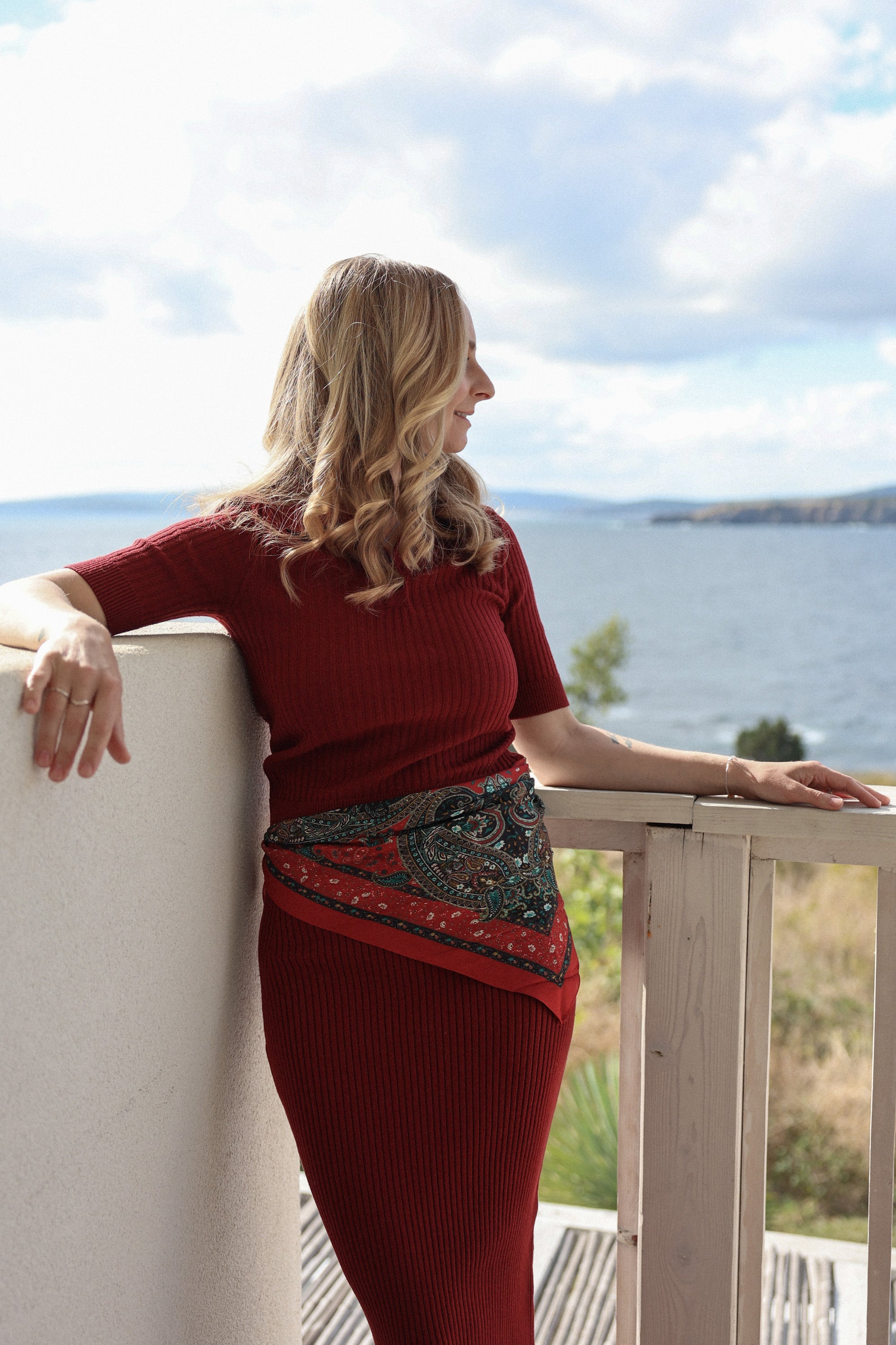 Laikydamiesi tvarumo principų, jai išmegzti pasirinkome EcoVero™ viskozę su stretch poliesteriu, kuris gaminiui suteikia elastingumo, ilgaamžiškumo ir ypatingo konforto.
