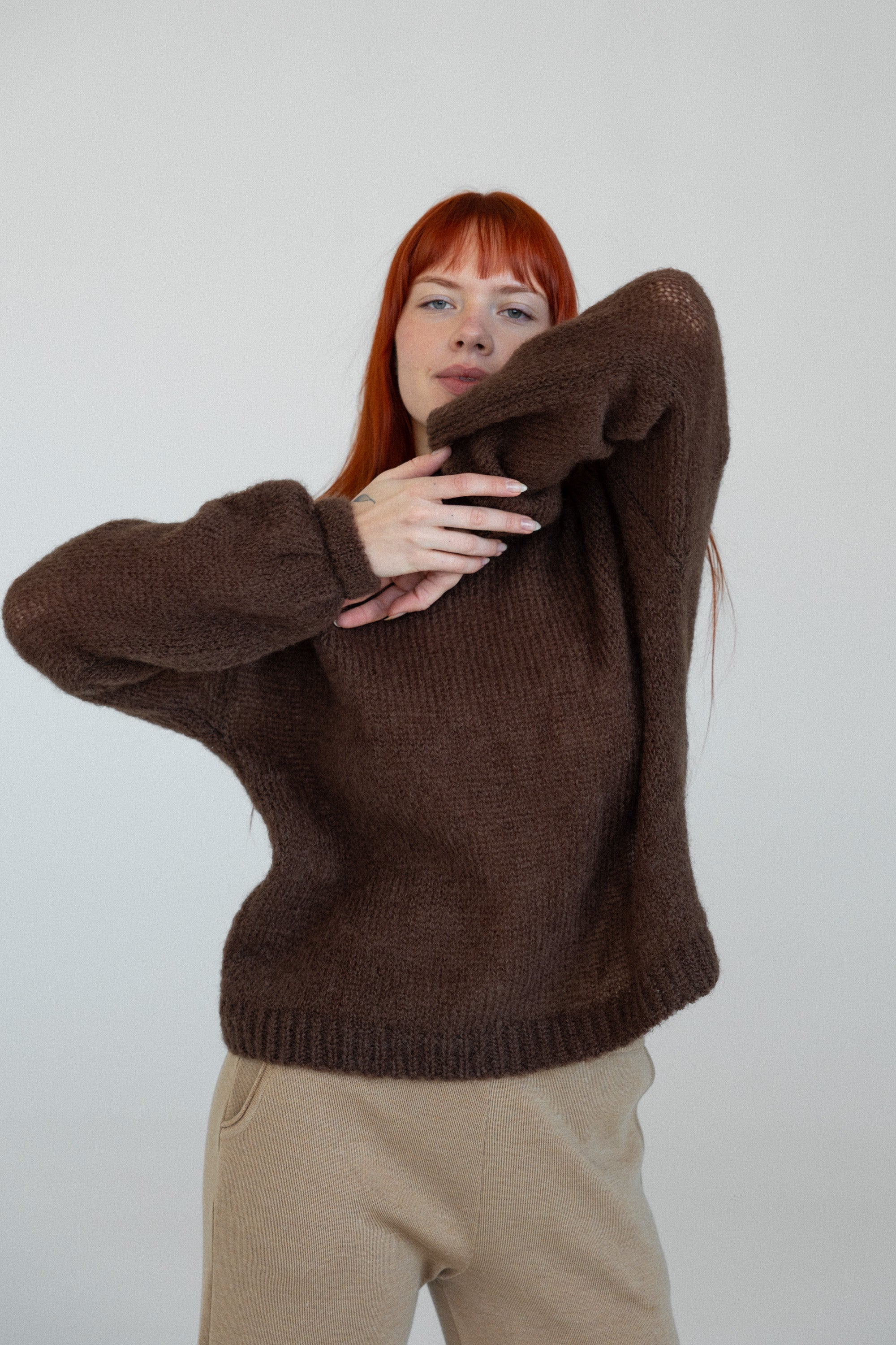 Megztas iš švelniausios kid moheros, jis apgaubs jaukumu ir šiluma. Laisvo ir kiek didinto oversized silueto puikiai tiks ir kasdieniams sluoksniams, ir puošniems deriniams.