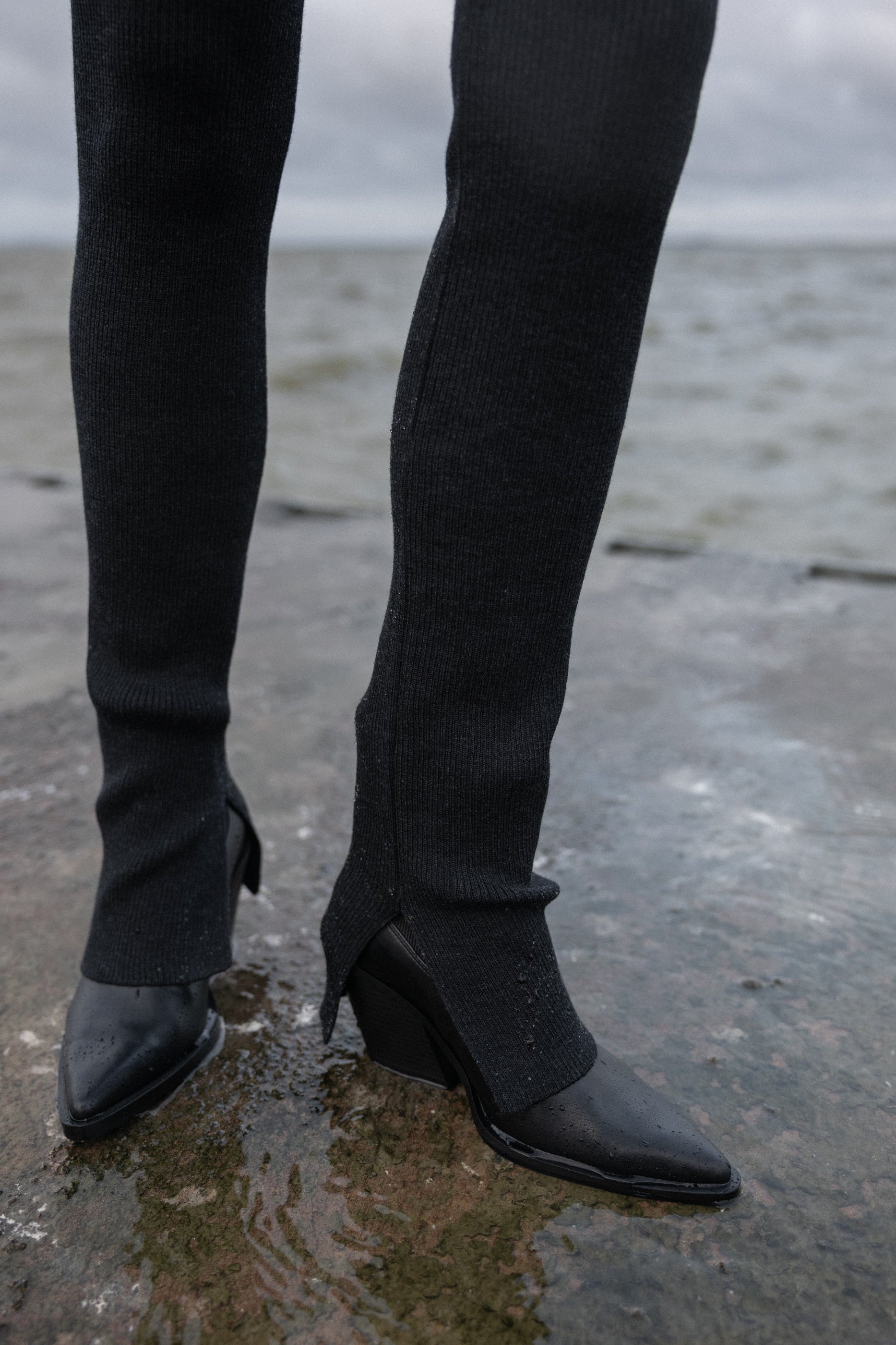 Barra stulpeliu megztos 100% Merino vilnos tamprės Juoda
