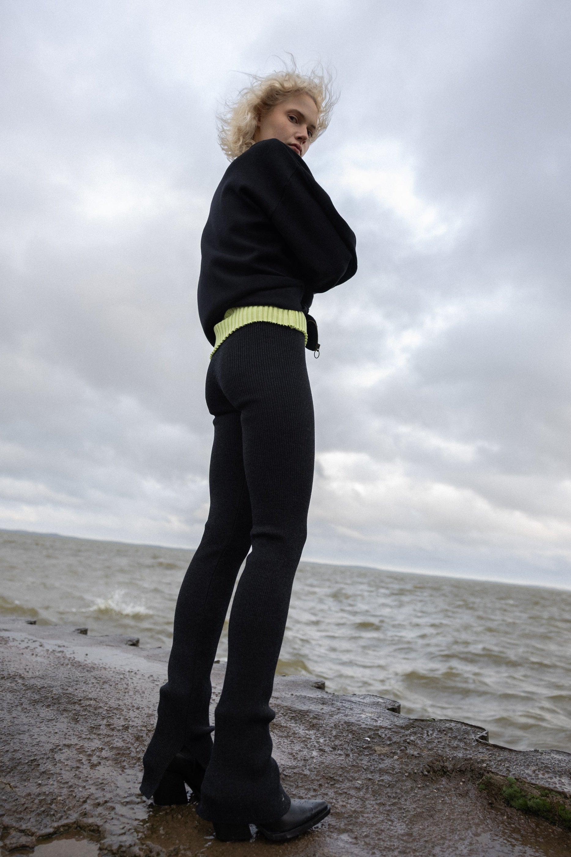 Megztos stulpeliu, prigludusio silueto su skeltukais apačioje bei sagute reguliuojamu liemeniu - taip, visai kaip vaikiškuose drabužiuose! Mūsų klientėms tai puikiai pasiteisino. Išbandėme jas ant daugybės įvairių moterų, turinčių skirtingas kūno formas, dydžius ir net nėštumo metu. Visos patikino, jog jos puikiai prisitaiko prie kūno! Dėvėkite deriniuose su mėgstamais marškiniais, švarku ar oversize stiliaus megztiniu.