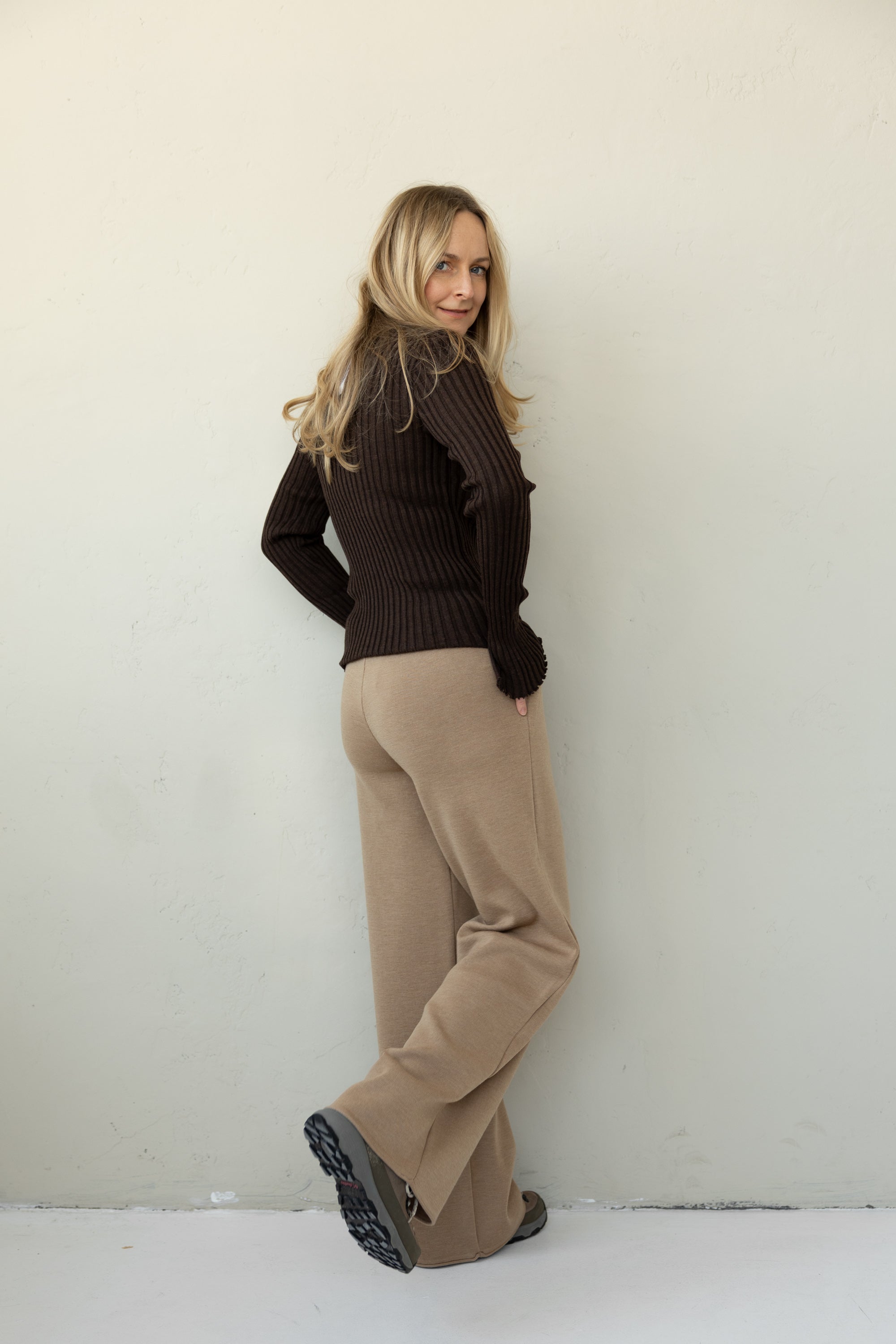 Grožis slypi paprastume - Brera merino palaidinė yra bazinė kiekvienos spintos sudedamoji dalis. Tampraus stulpelių rašto ji sukurta prigludusio silueto su prailgintomis rankovėmis, kurios užbaigtos skeltuku.