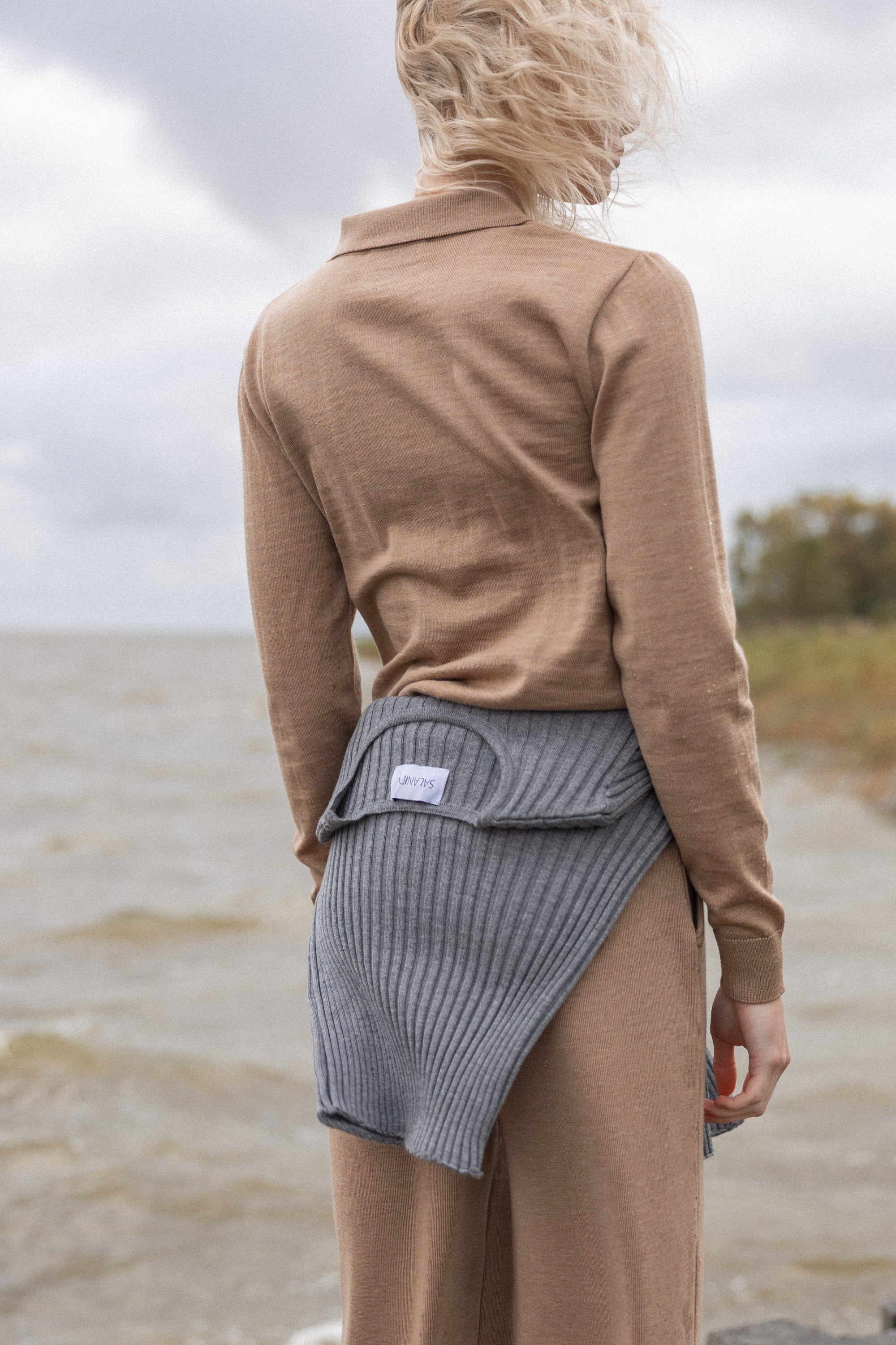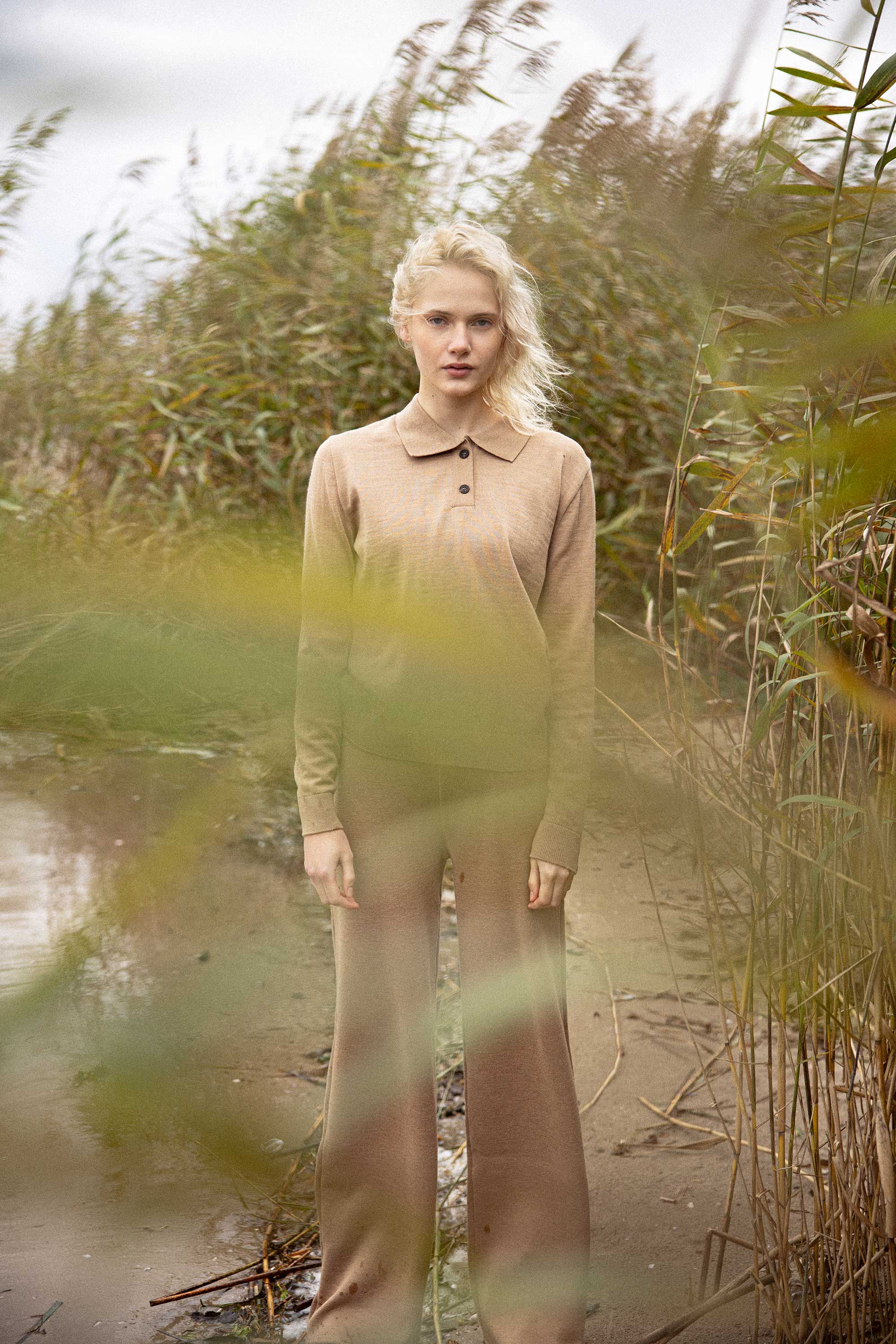 Galante palaidinė žavi savo paprastumu ir lengva elegancija. Ji sukurta laisvo silueto, ilgomis rankovėmis ir klasikine polo apykakle.