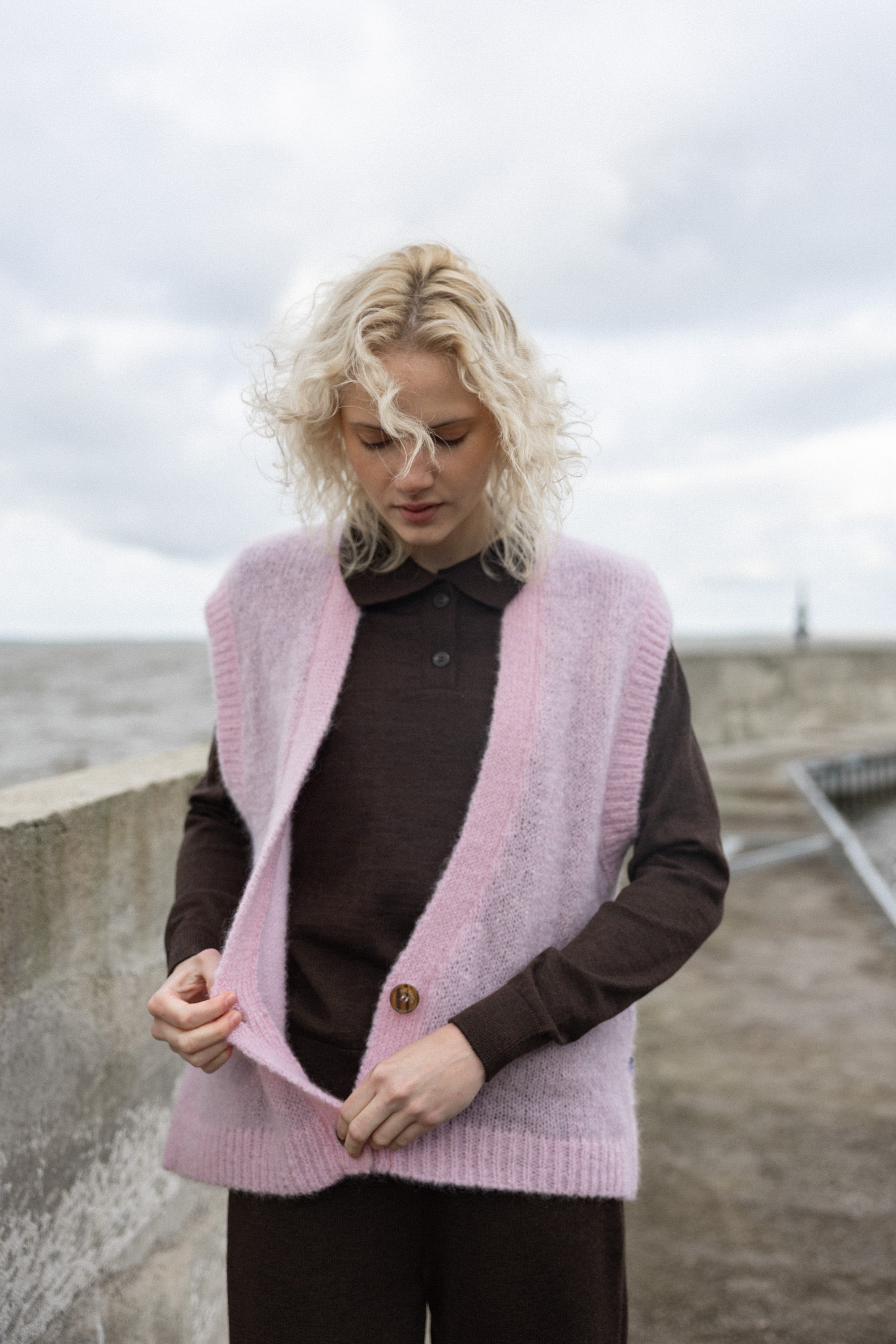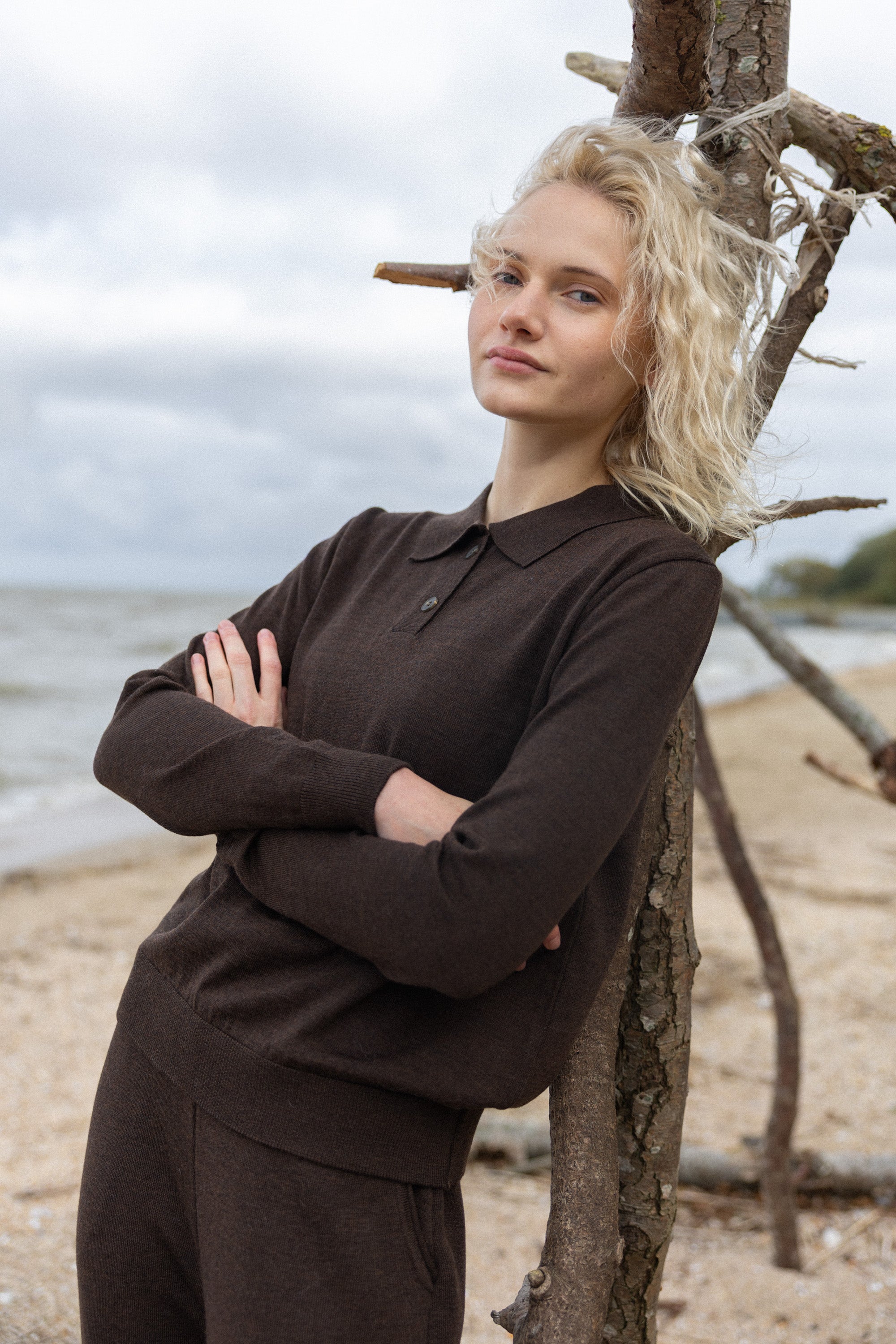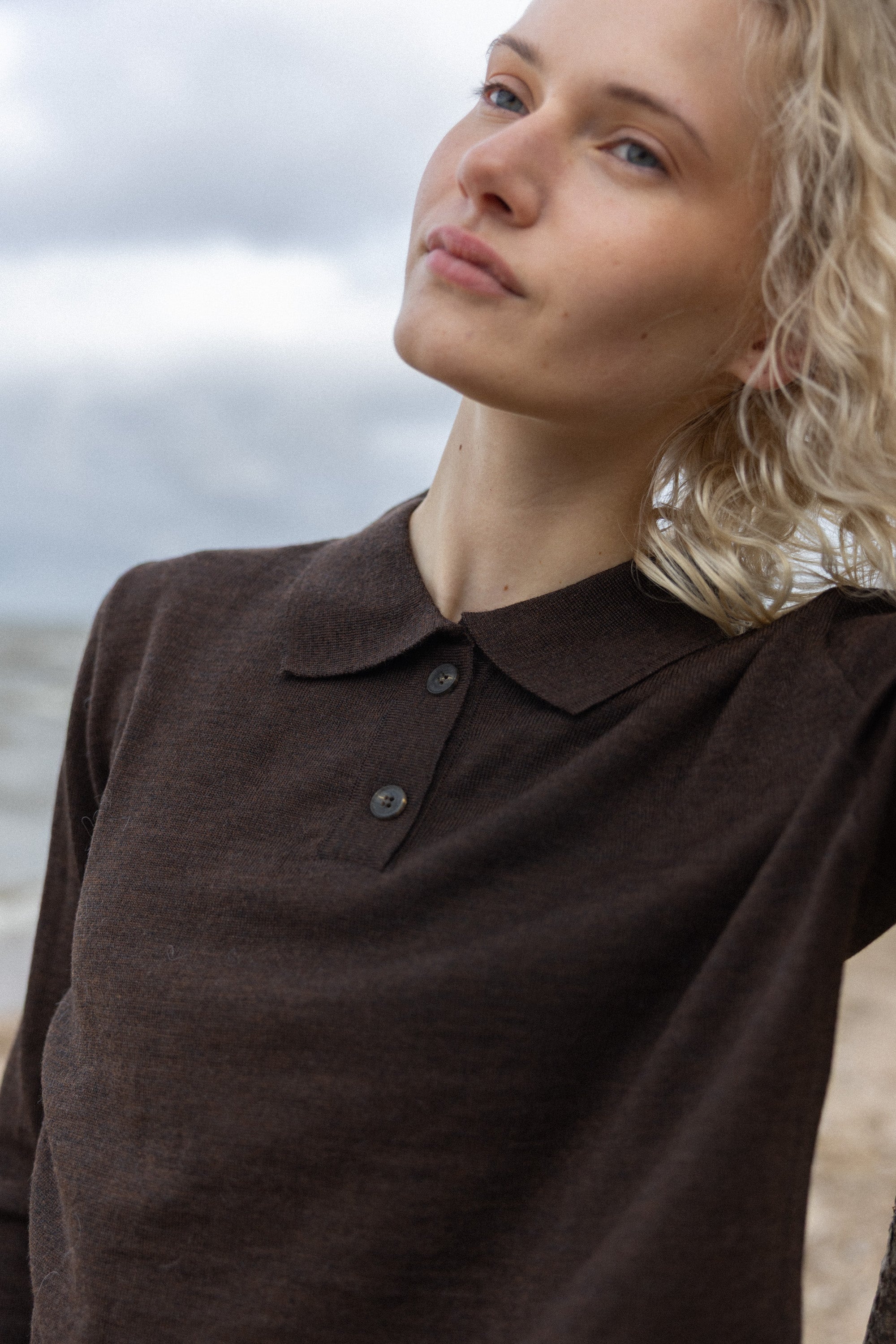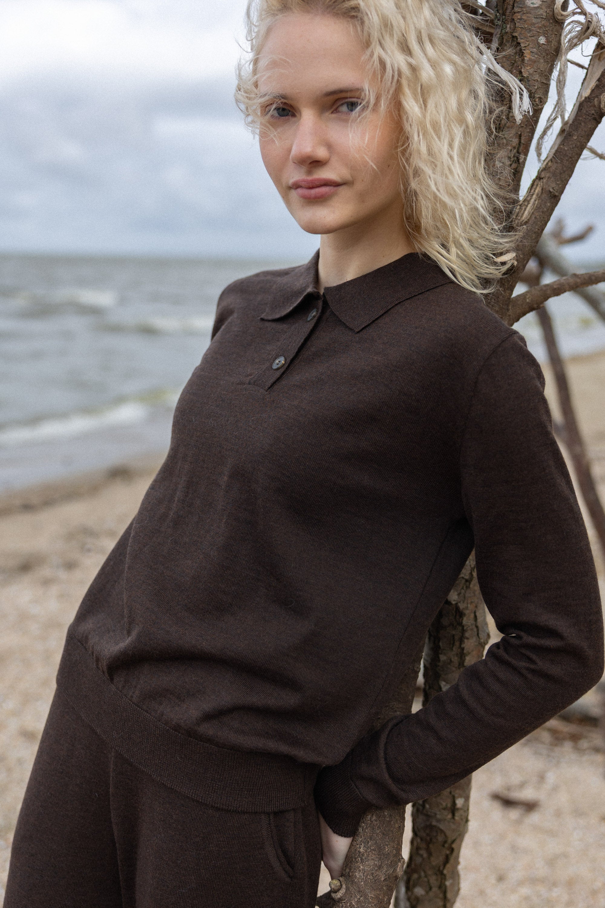 Galante palaidinė žavi savo paprastumu ir lengva elegancija. Ji sukurta laisvo silueto, ilgomis rankovėmis ir klasikine polo apykakle.