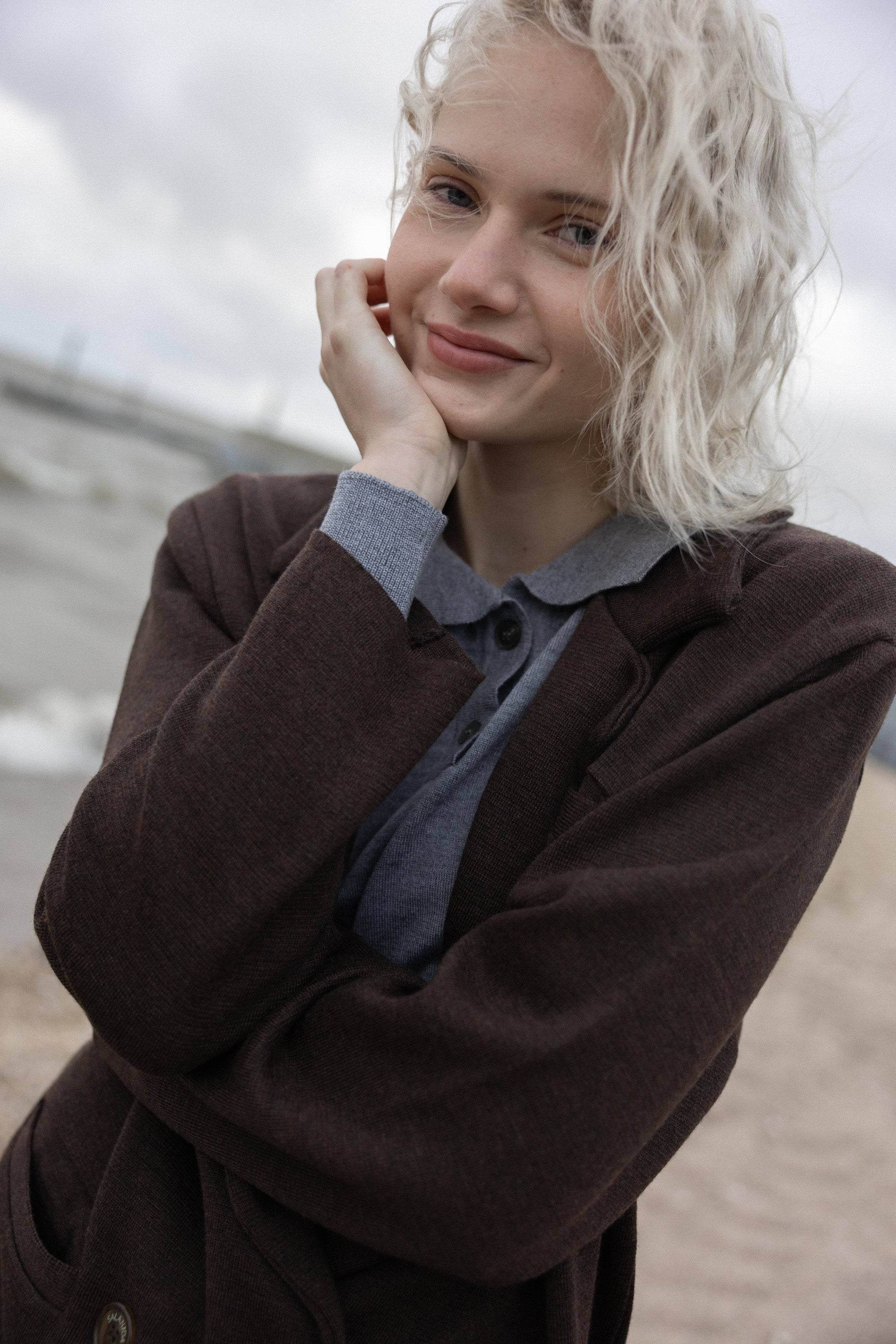 Galante palaidinė žavi savo paprastumu ir lengva elegancija. Ji sukurta laisvo silueto, ilgomis rankovėmis ir klasikine polo apykakle.