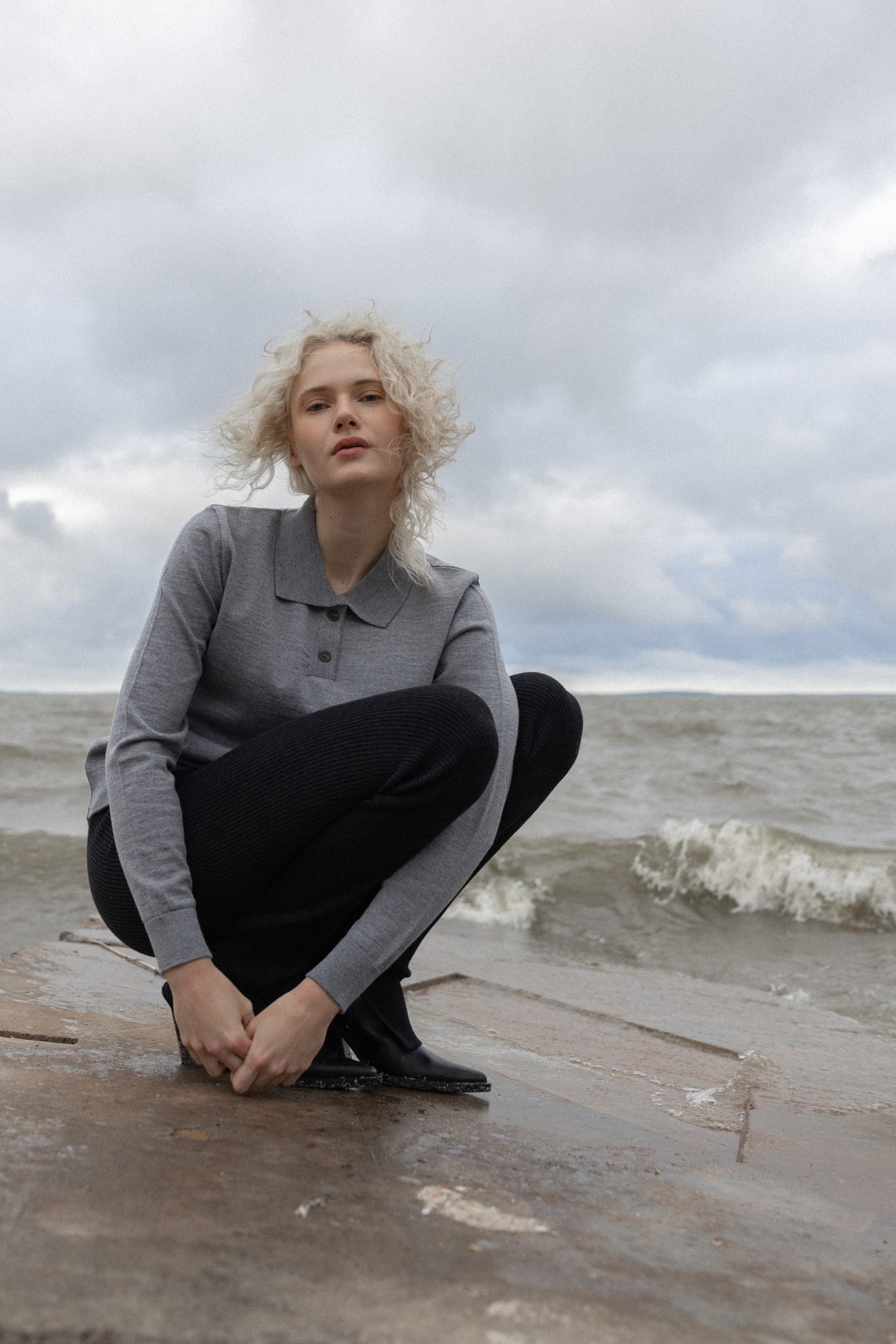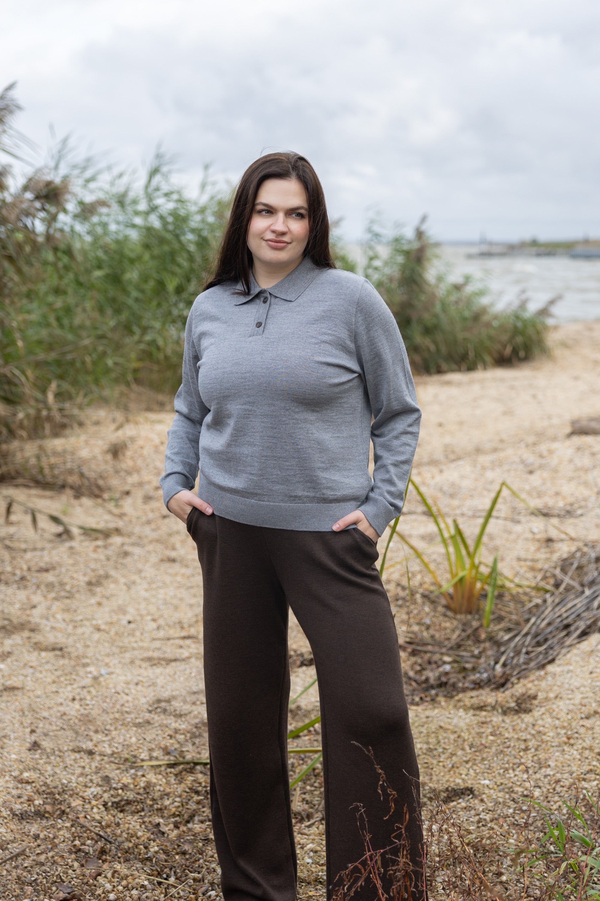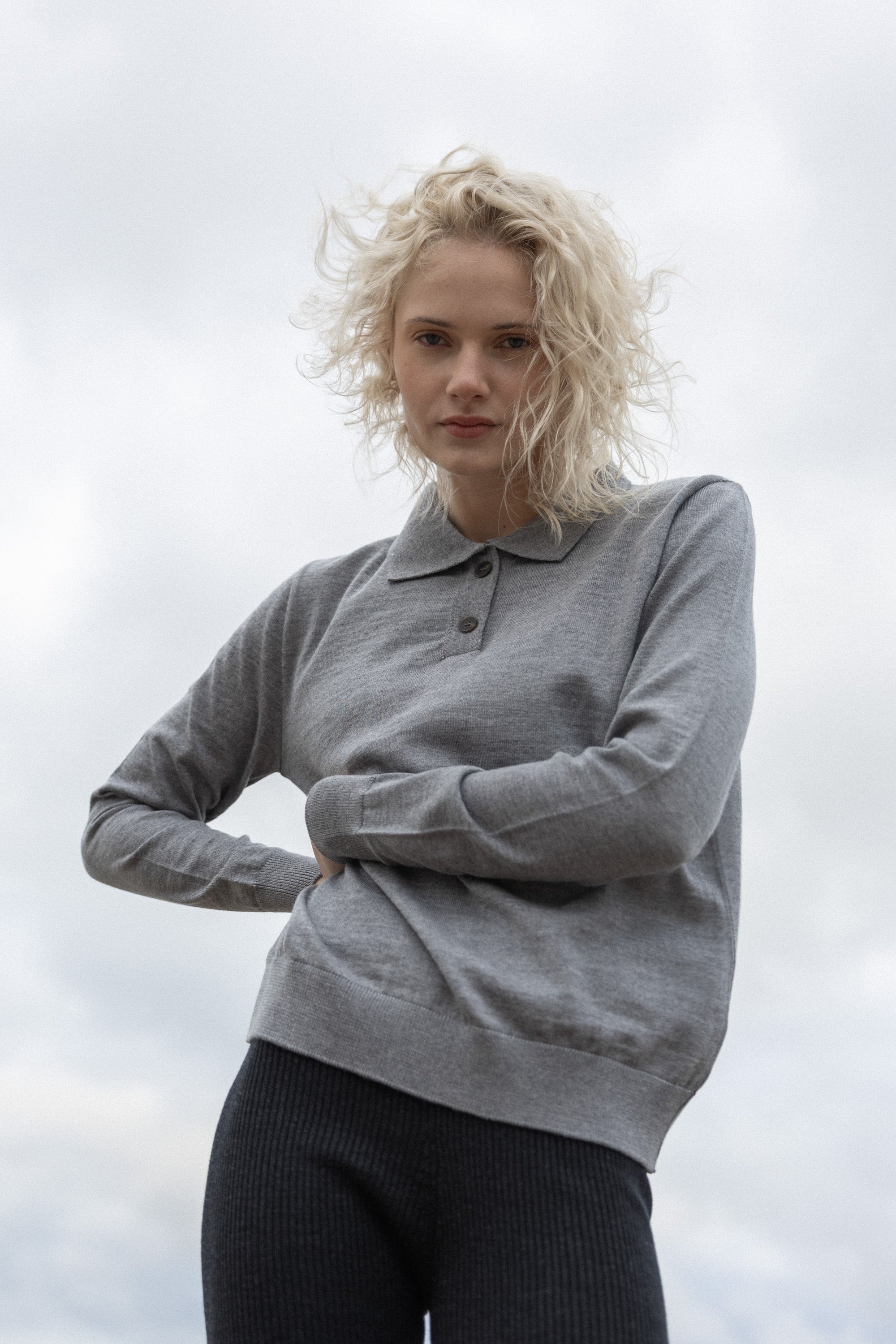 Galante 100% merino polo palaidinė Šviesiai pilka