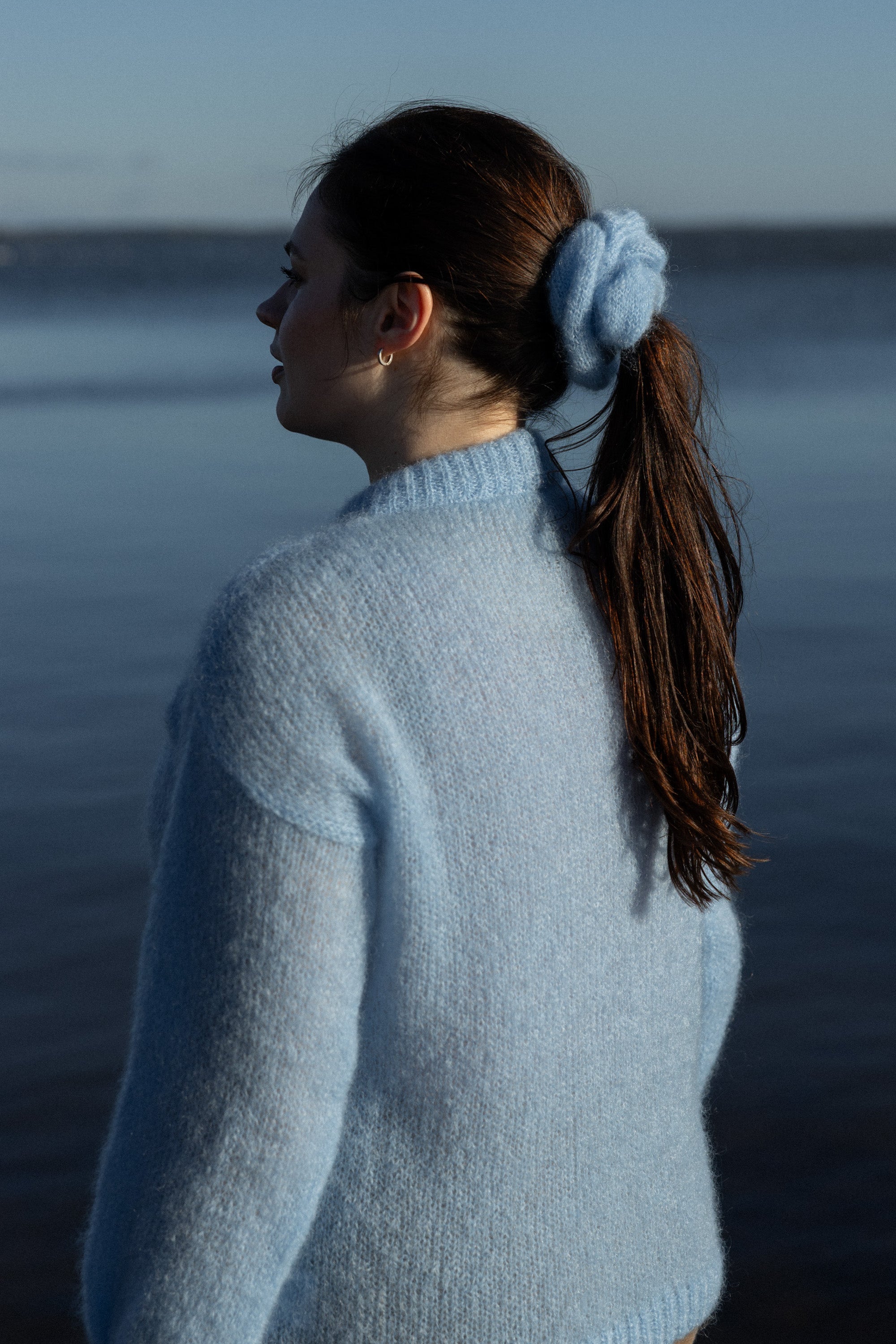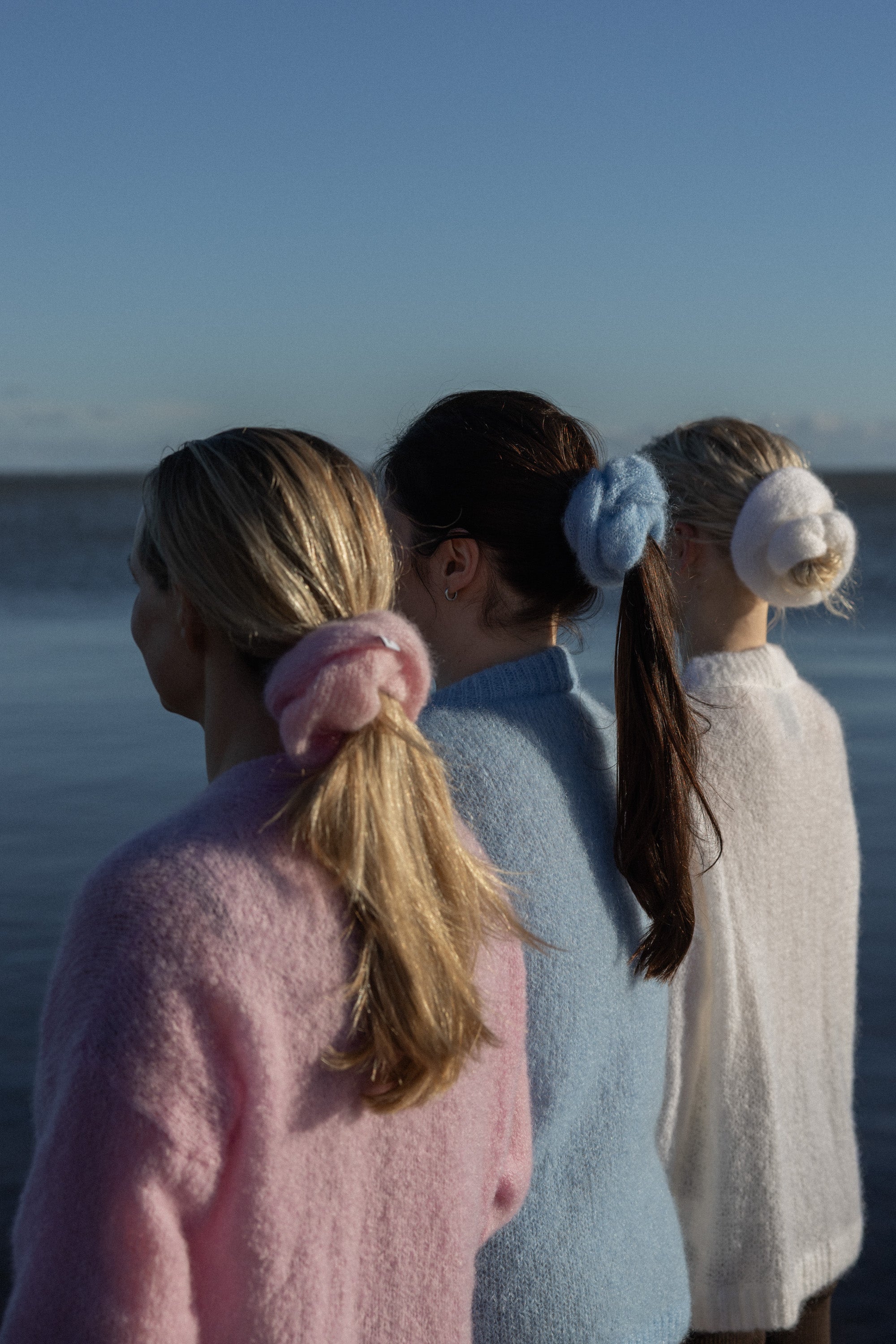 Melody plaukų gumelė net kasdienę šukuoseną paverčia džiaugsmo akimirka. Megzta iš švelnios kid-moheros, ji tarsi debesėlis plaukuose. Pūkuota, lengva ir nepaprastai elegantiška.
