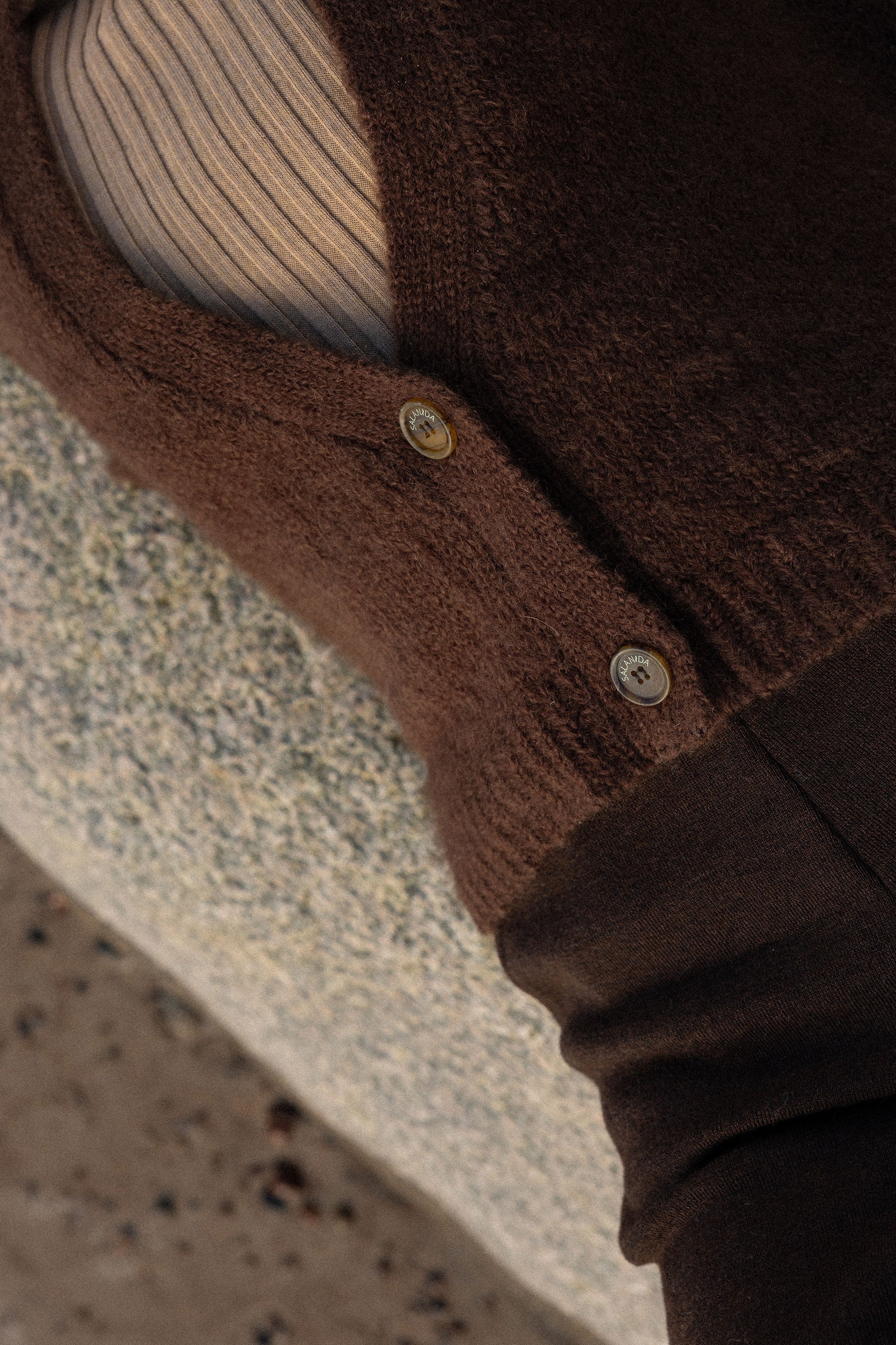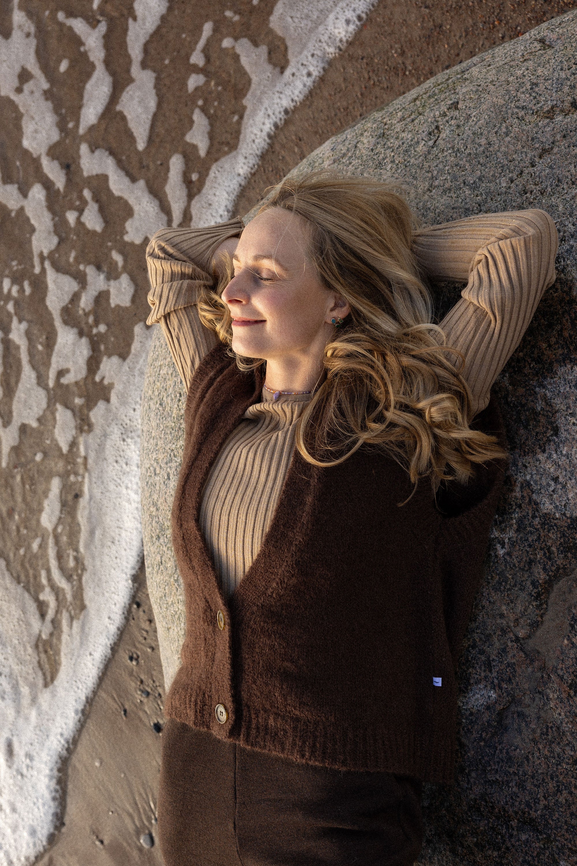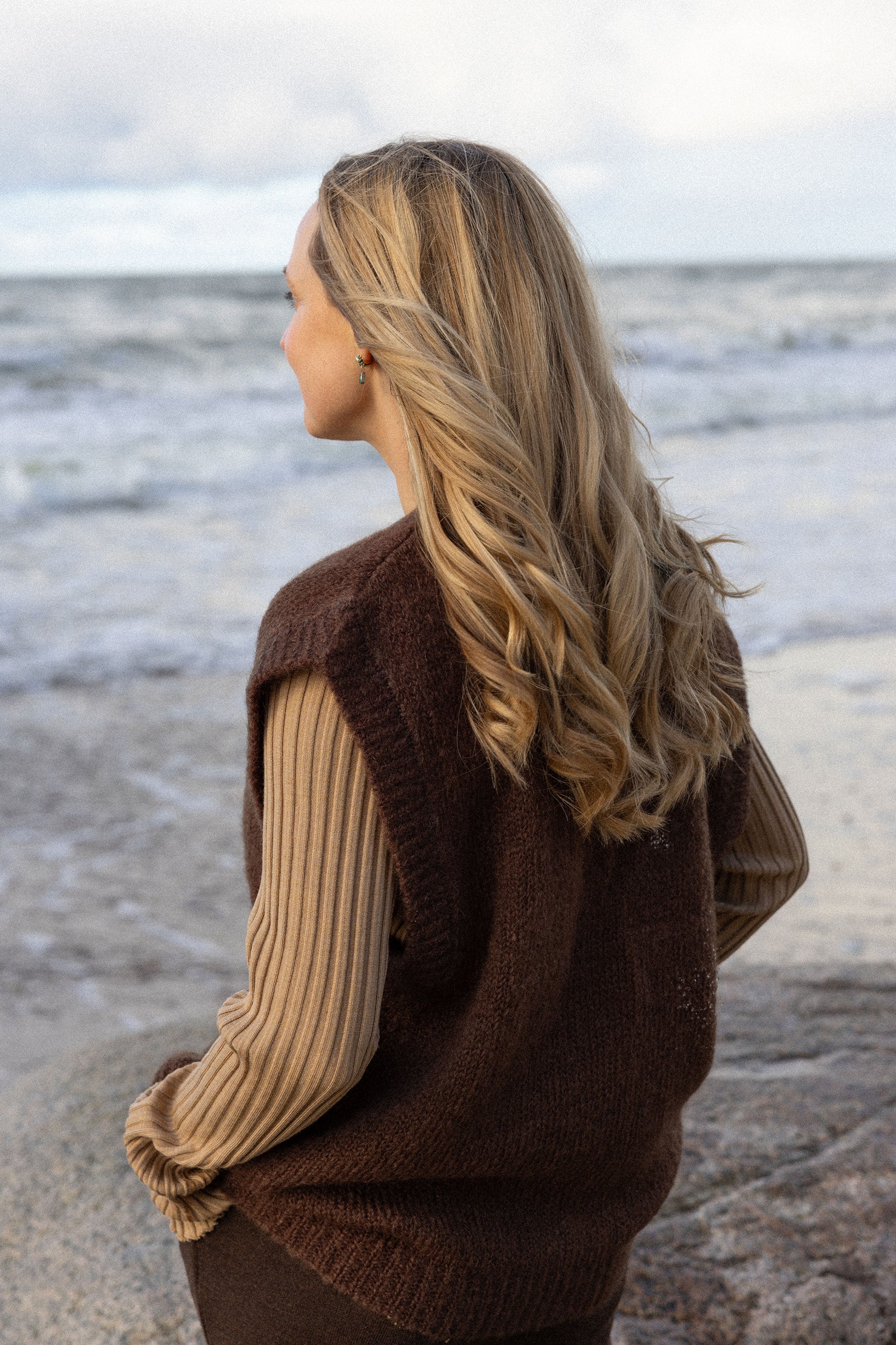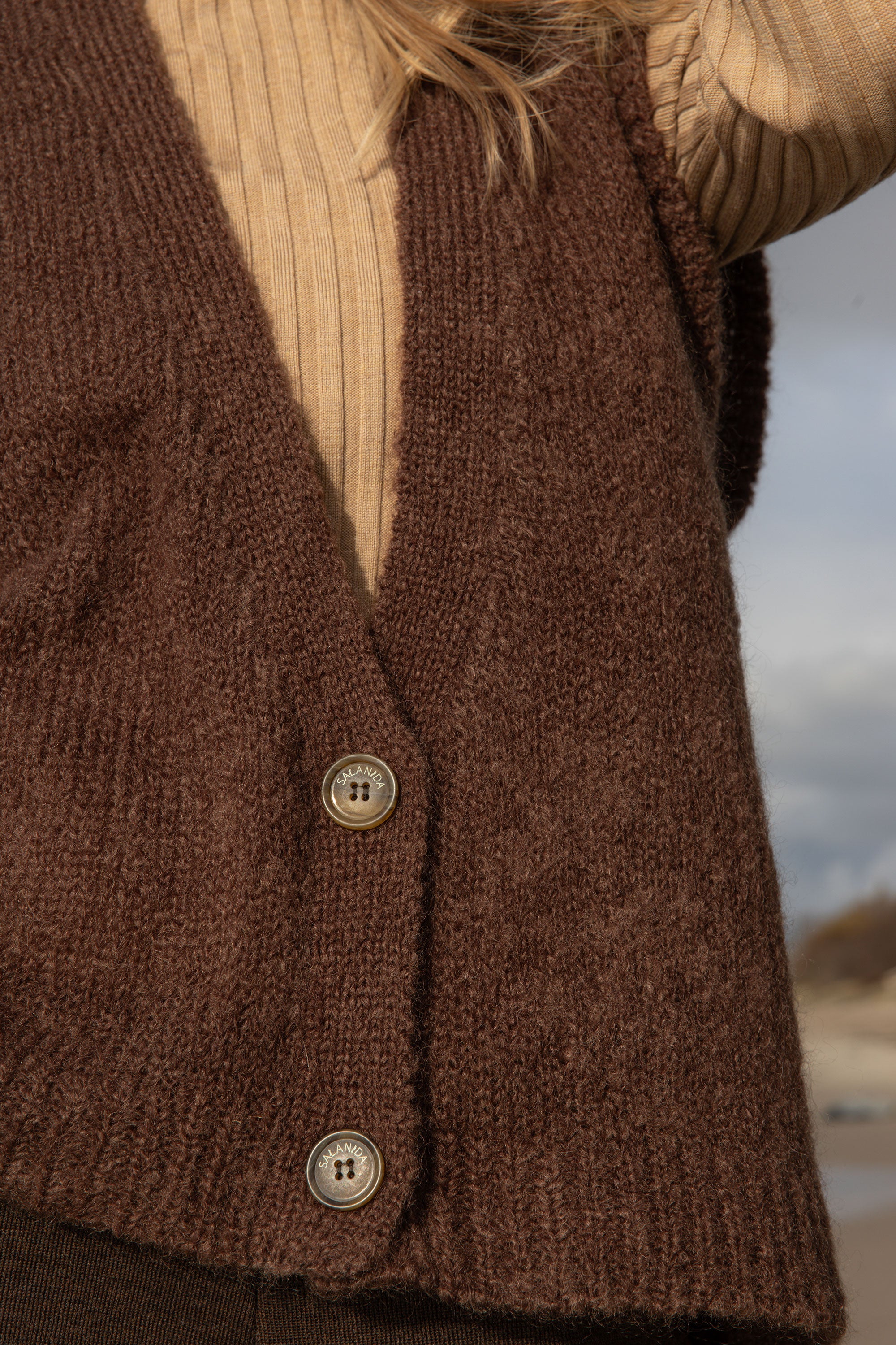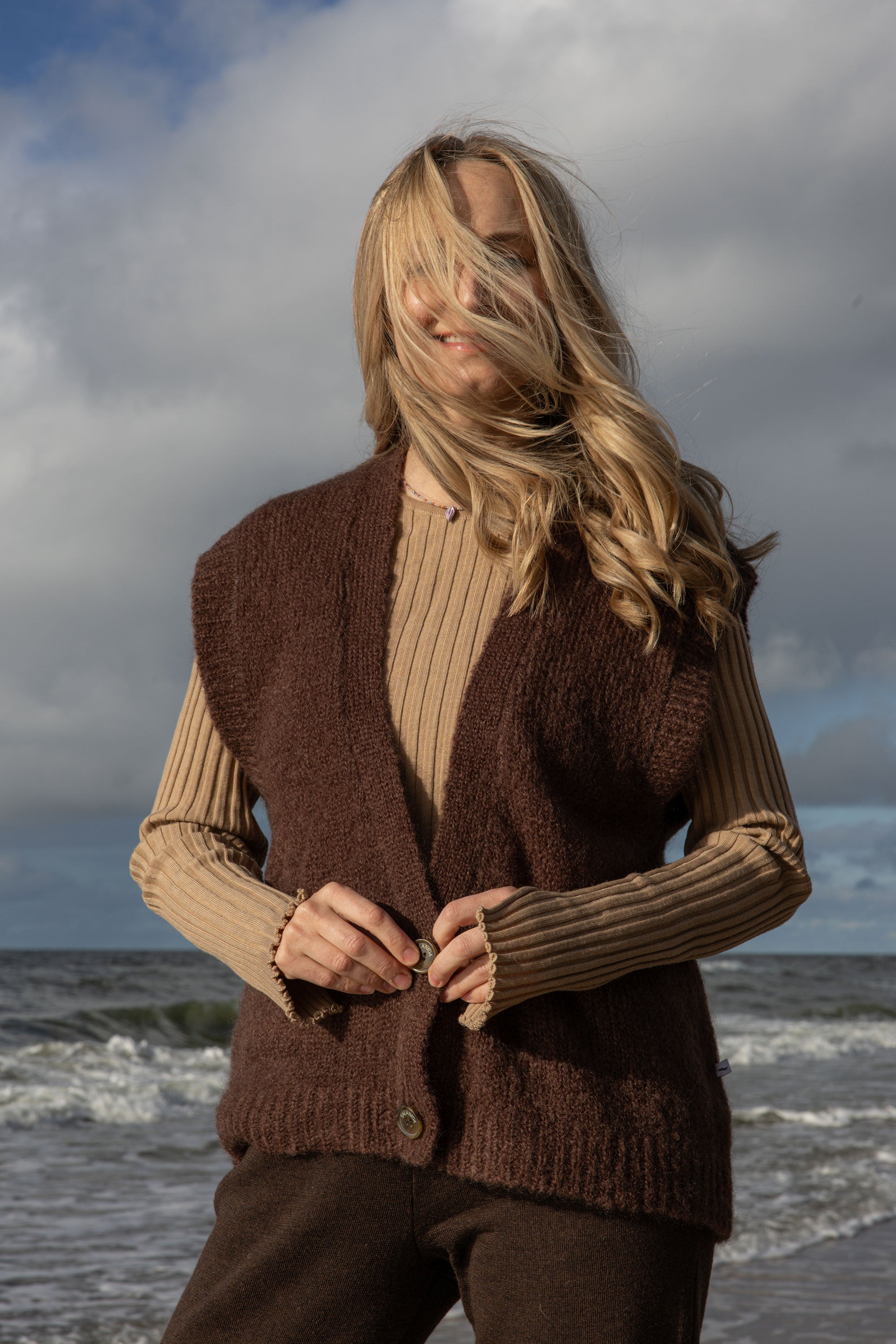Naujas minkštas sluoksnis į debesėlių kolekciją. Melody liemenė - tai drabužis, peržengiantis sezonų ir tendencijų ribas. Megzta iš švelniausios kid moheros, jis apgaubs neapsakomu jaukumu ir šiluma. Sukurta laisvo silueto ir vieno universalaus dydžio, ji puošta firminėmis logo sagomis. Sluoksniuok kasdienai su palaidinėmis, marškinėliais ir marškiniais.