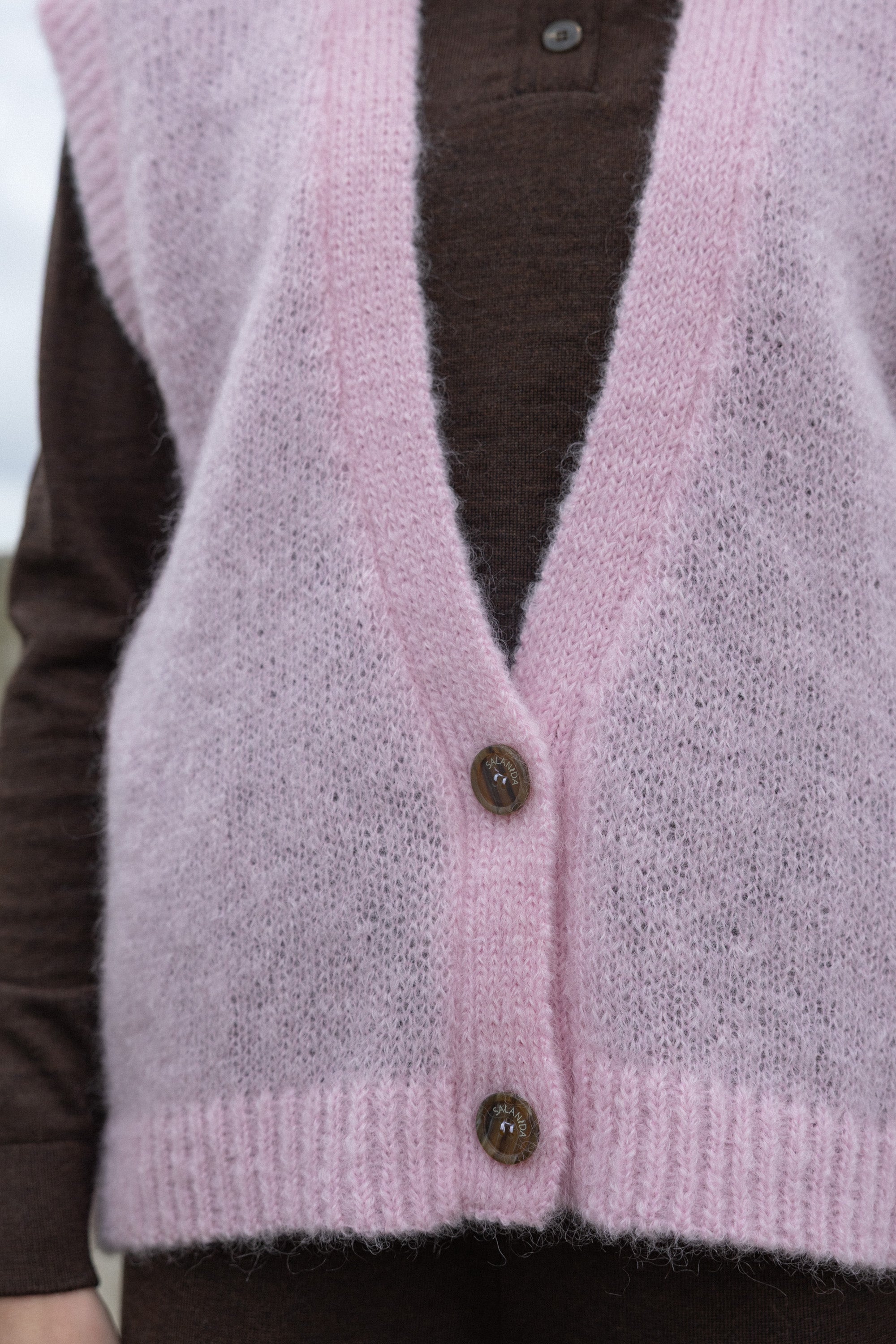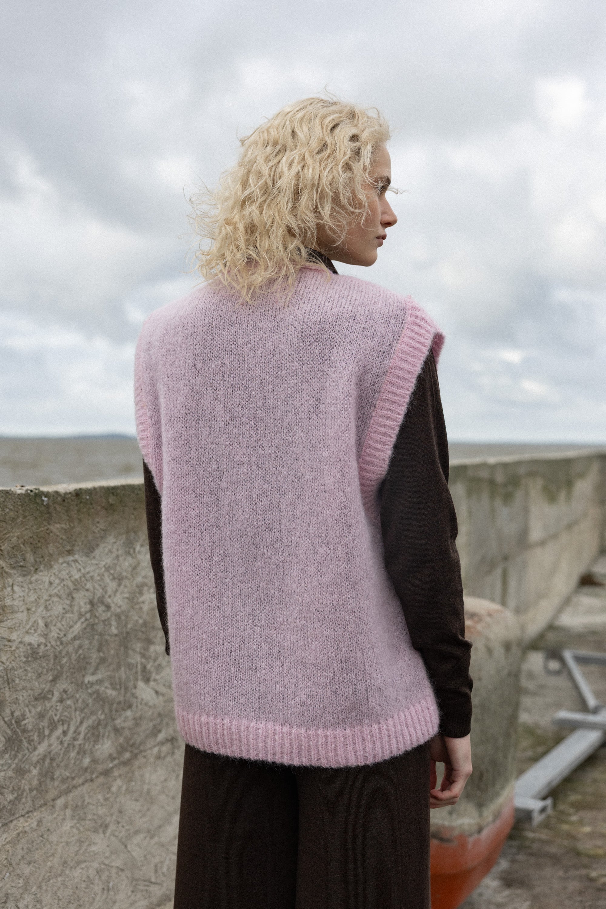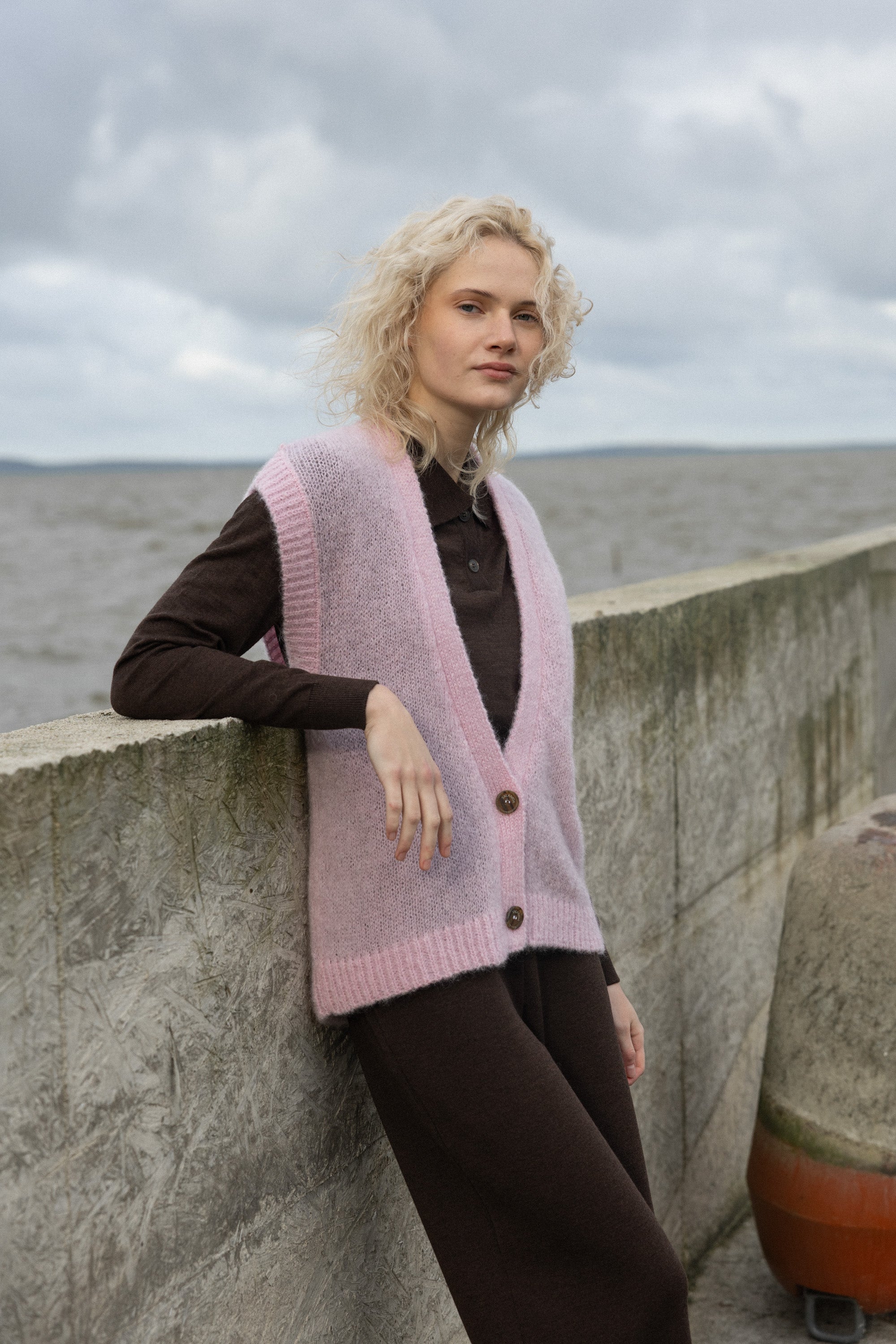 Naujas minkštas sluoksnis į debesėlių kolekciją. Melody liemenė - tai drabužis, peržengiantis sezonų ir tendencijų ribas. Megzta iš švelniausios kid moheros, jis apgaubs neapsakomu jaukumu ir šiluma. Sukurta laisvo silueto ir vieno universalaus dydžio, ji puošta firminėmis logo sagomis. Sluoksniuok kasdienai su palaidinėmis, marškinėliais ir marškiniais.