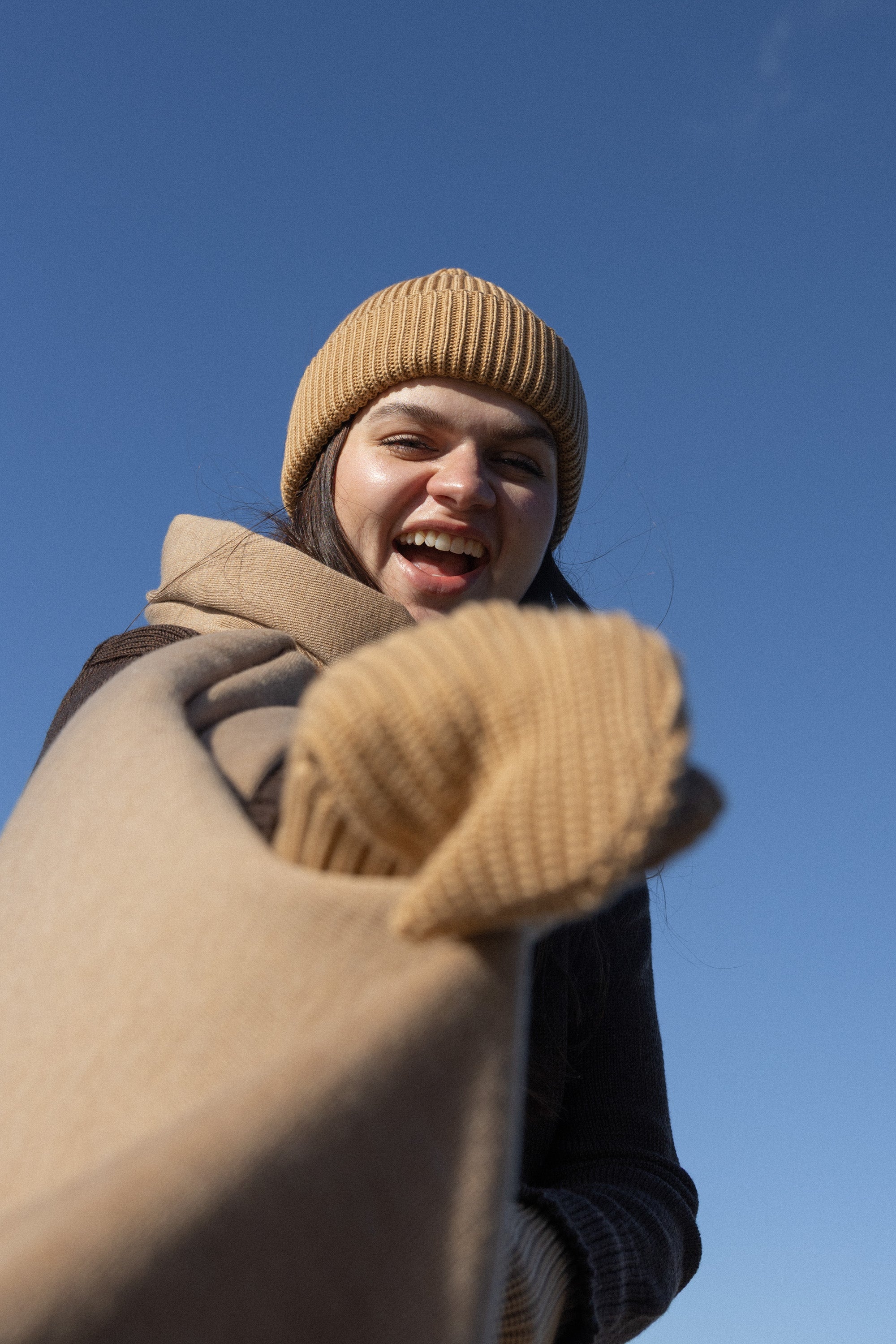 Nonna - jaukios, stambiu stulpeliu megztos pirštinės iš ekstra fine merino vilnos. Minkštos, šiltos ir puikiai tinkančios, kai šaltukas ima kąsti.